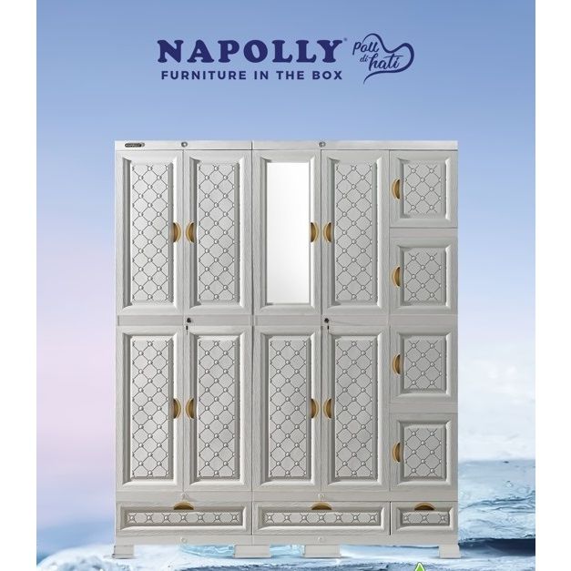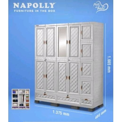 LEMARI PLASTIK NAPOLLY 5 PINTU JUMBO 4 3 SUSUN KACA BERKUALITAS 2024 GANTUNGAN PAKAIAN MINIMALIS HIGHT QUALITY ORIGINAL