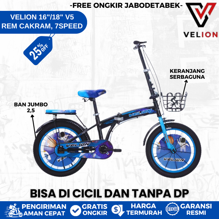TANPA DP Sepeda Lipat VELION 16/20 Inch Rem Discbrake Terbaru Anak Perempuan Laki-Laki Dewasa Pacific United Polygon