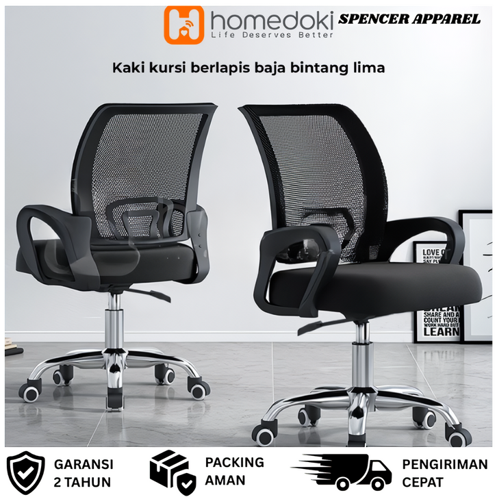 Homedoki Kursi Kerja Kantor Roda Murah Minimalis Retro Informa Kuat Lipat Putar Direktur