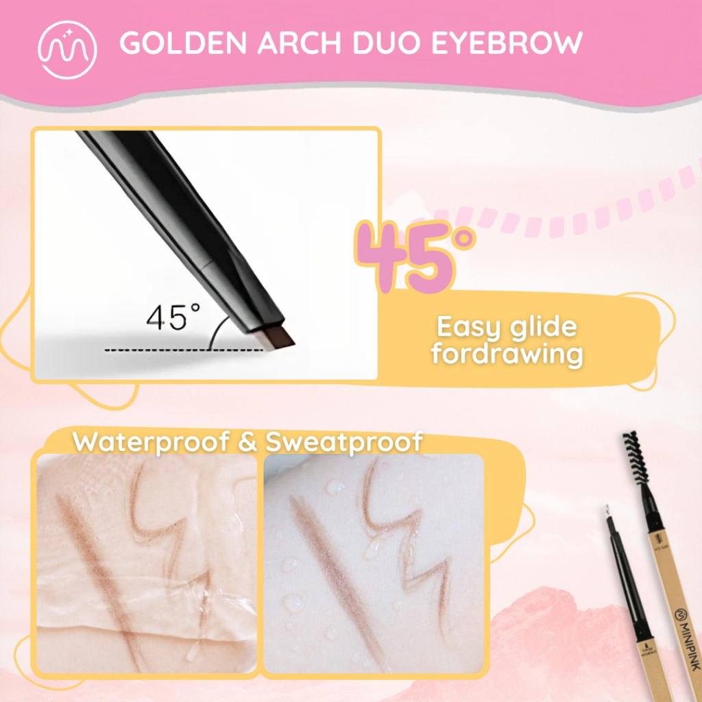Golden Arch Duo Eyebrow Pencil Gold Double Head Eyebrow 2 in 1 Pensil Alis Waterproof MP044