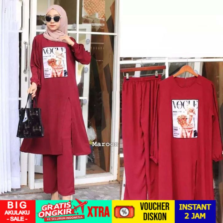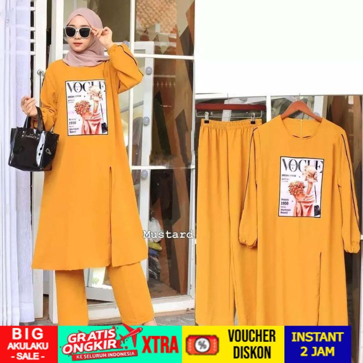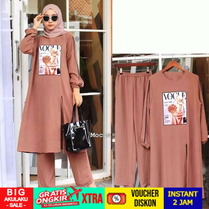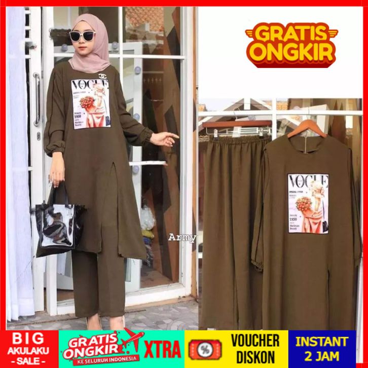 BAJU STELAN WANITA Virgia Set / Setelan Crinkle Sablon Kekinian 2023 Tunik Dan Celana / Pakaian Set Wanita Terbaru