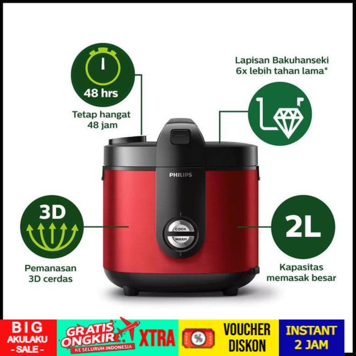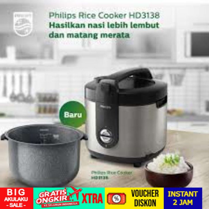 (GRATIS ONGKIR) PHILIPS 2LRice Cooker Premium Philips HD3138 Magic Com 2Liter HD-3138