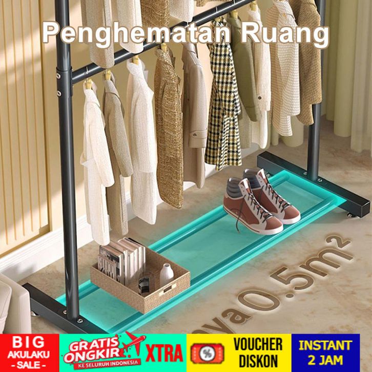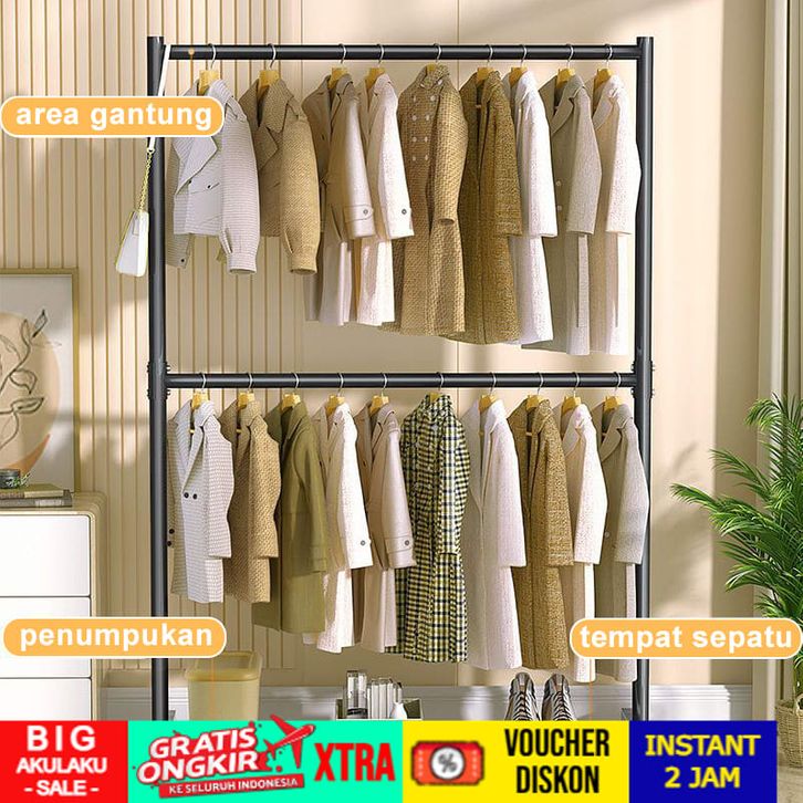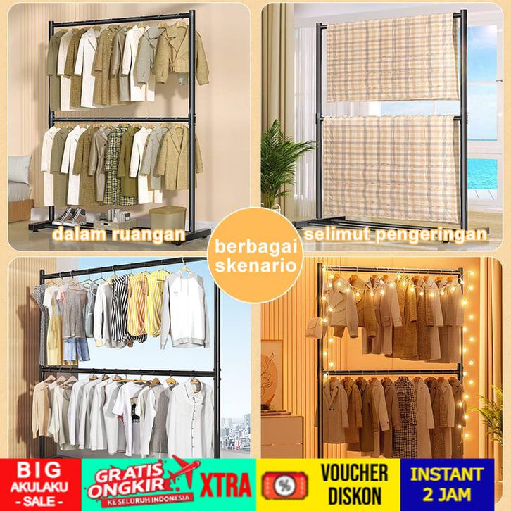 Gantungan Baju Besi Rak Baju Gantung Berdiri Gawang Baju Estetik Stabil Luar Ruangan Jemuran Baju Rak Baju Bayi Lemari