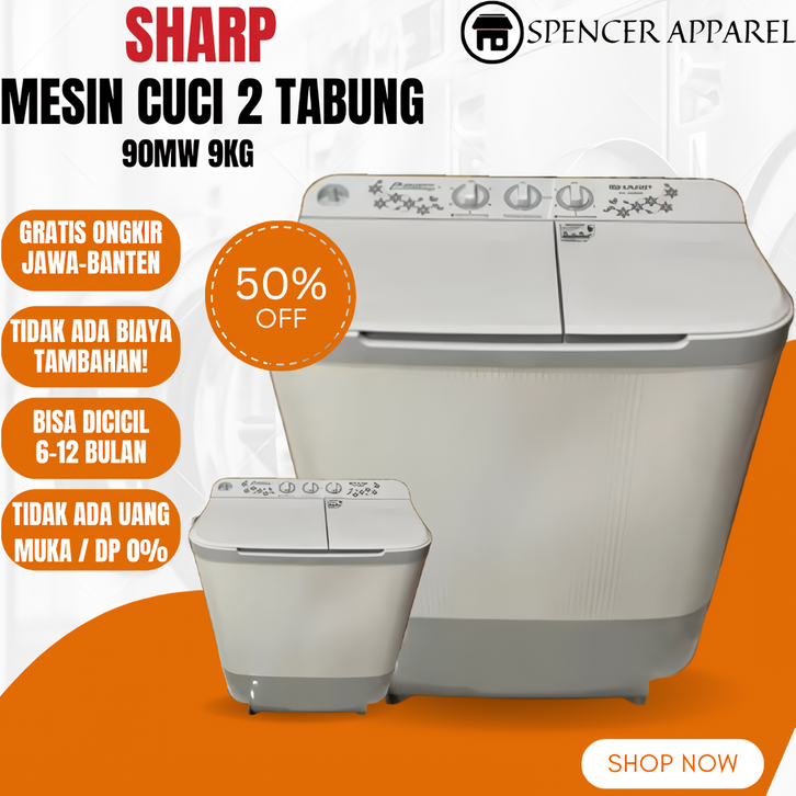 Sharp Mesin Cuci 2 Tabung 4 7 8 9 10 12 14Kg Sanken Polytron Denpoo Aqua Arashi