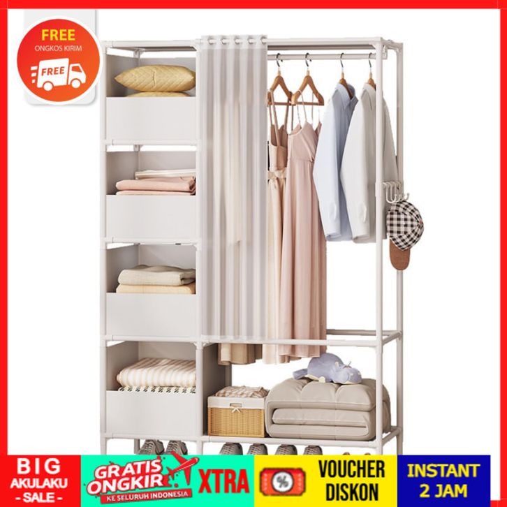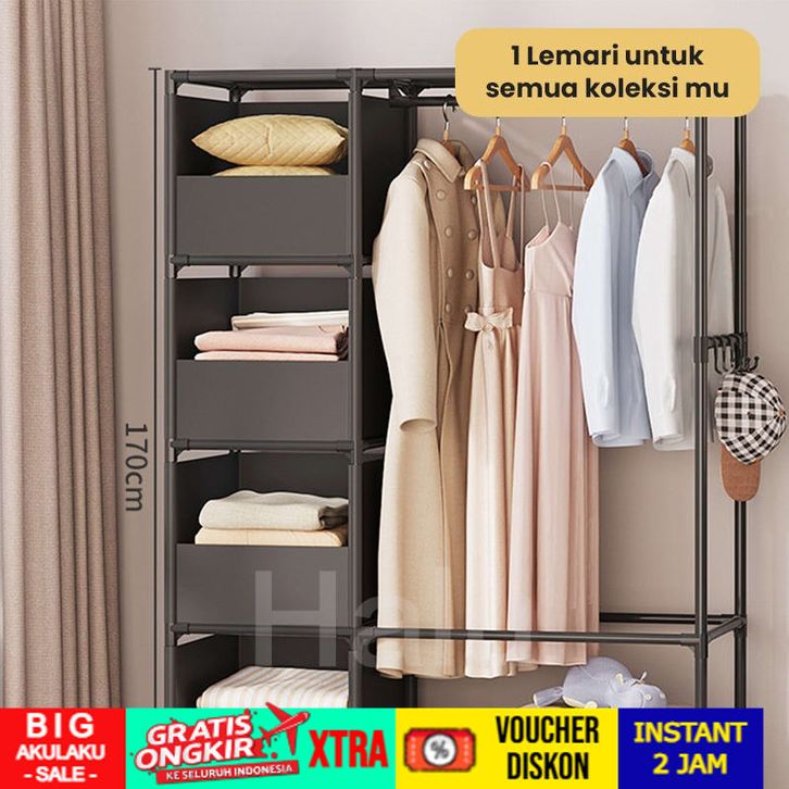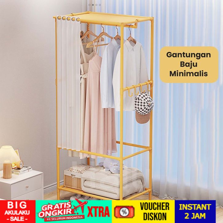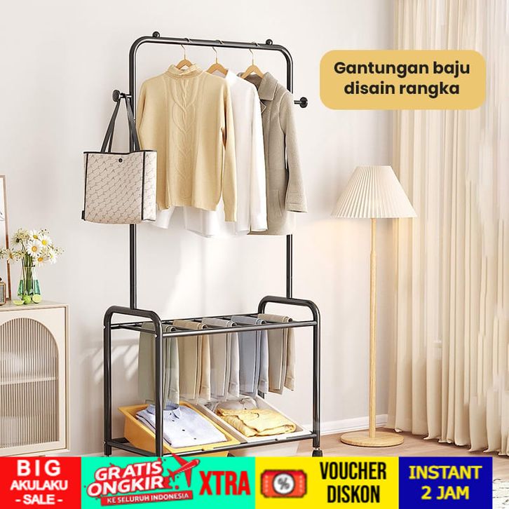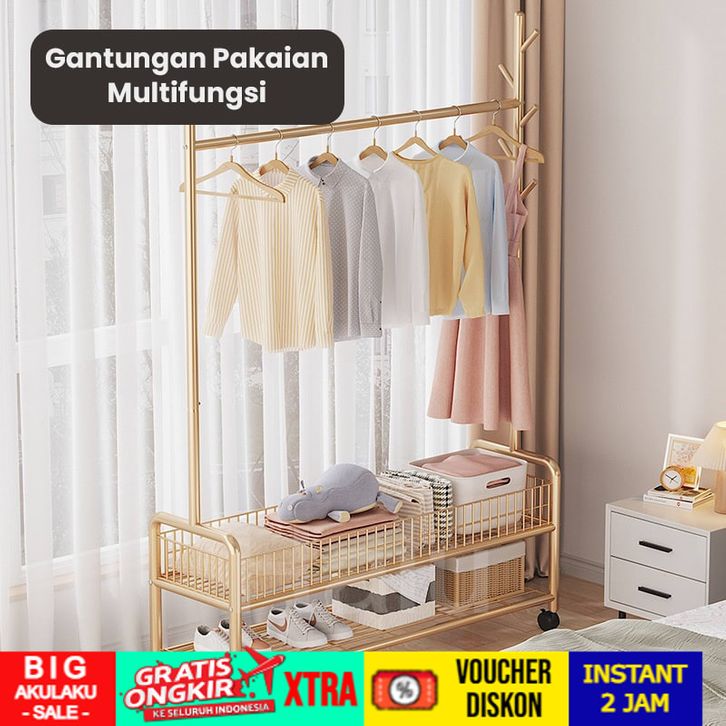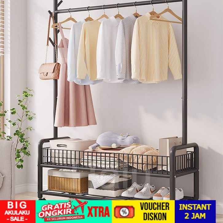 Rak Gantung Serbaguna Rak Baju Celana Tas Topi Sepatu Sandal Portable Stand Hanger Jemuran Baju Dengan 2 Rak Multifungsi
