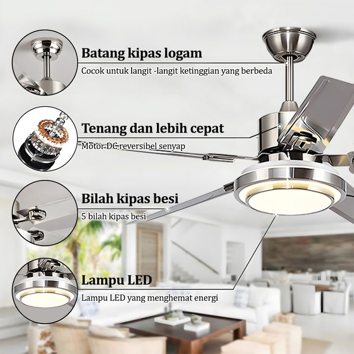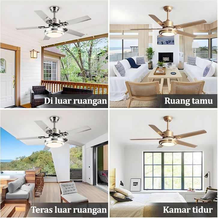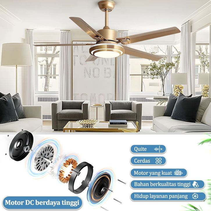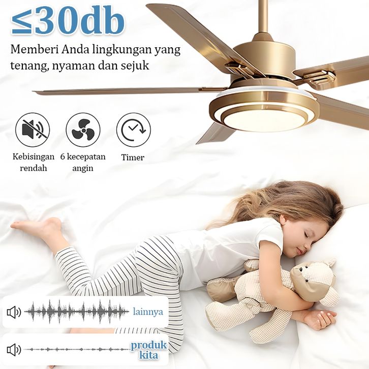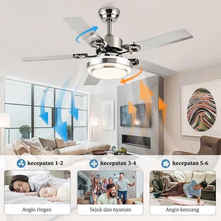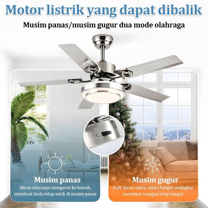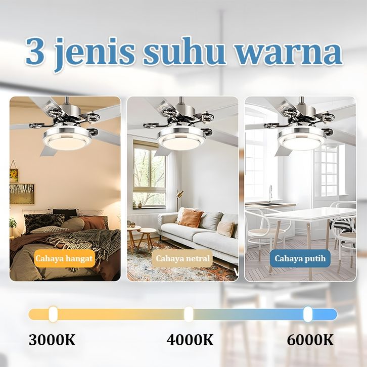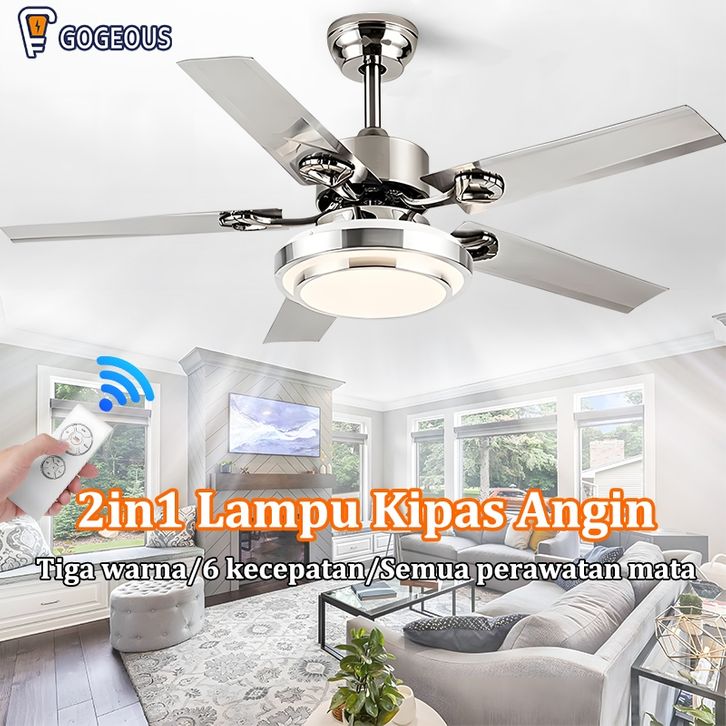 Lampu kipas angin gantung plafon ruang tamu mewah kipas lampu gantung hias LED 2in1 3 warna 6 kecepatan 42/48/52 inci