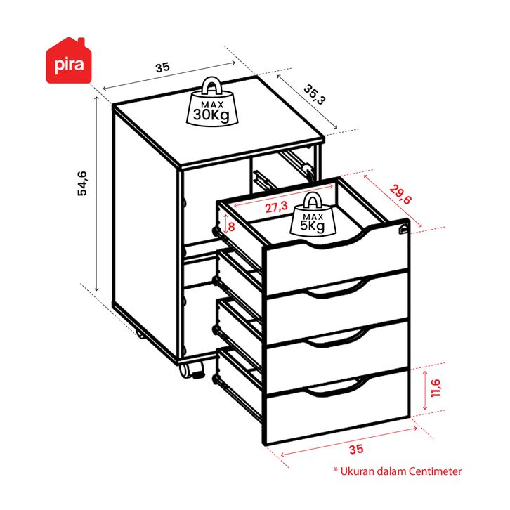 PIRA METROPOLIS OX - KURO PD Meja Laci / Pedestal