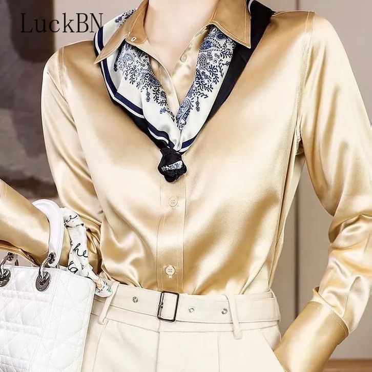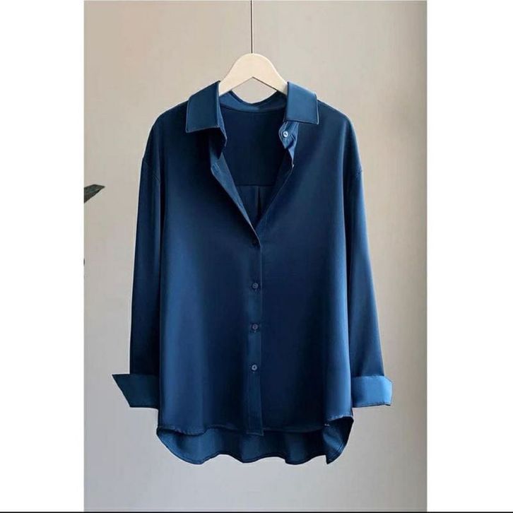 Atasan Kemeja Cewek Satin Lengan Panjang Kemeja Wanita Kekinian Bahan Satin Premium Kualitas Import