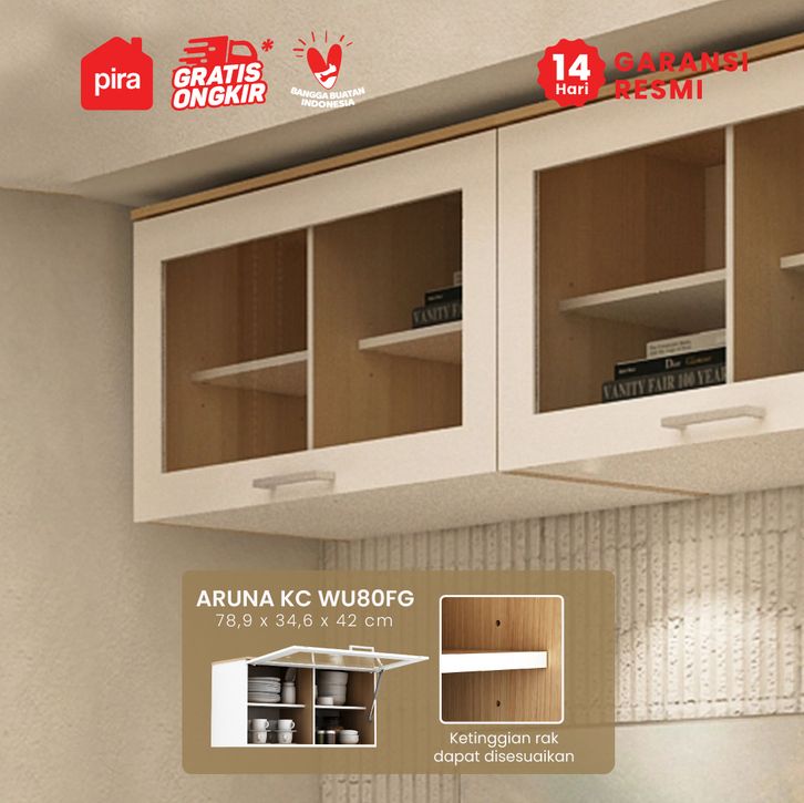 PIRA METROPOLIS OX - ARUNA KC WU80FG Rak Dapur / Rak Gantung Dapur / Kitchen Set Atas 2 Pintu Kaca Flip