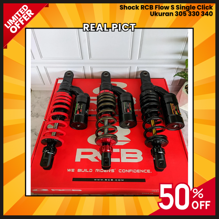 [Mall] Shockbreaker Shock RCB Flow S Ukuran 305MM/ 330MM/ 340MM Vario 125/ Vario 150/ Vario160/ Beat/ Scoopy Donat/ Mio