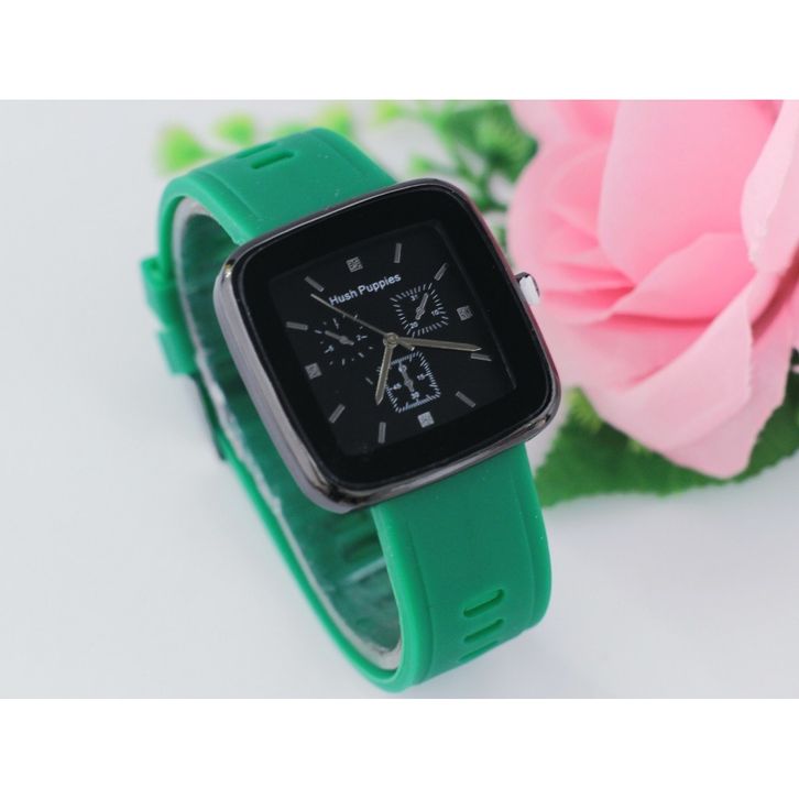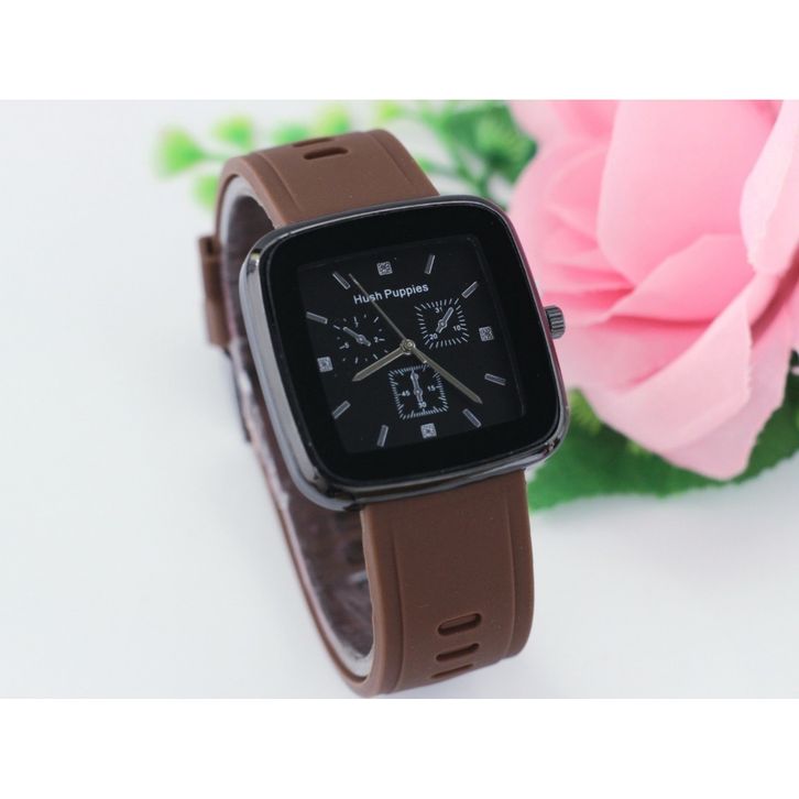Jam Tangan Pria Wanita Hush Puppies Best Seller Mewah Tali Rubber Chrono Variasi Free Box & Baterai Candangan 202412