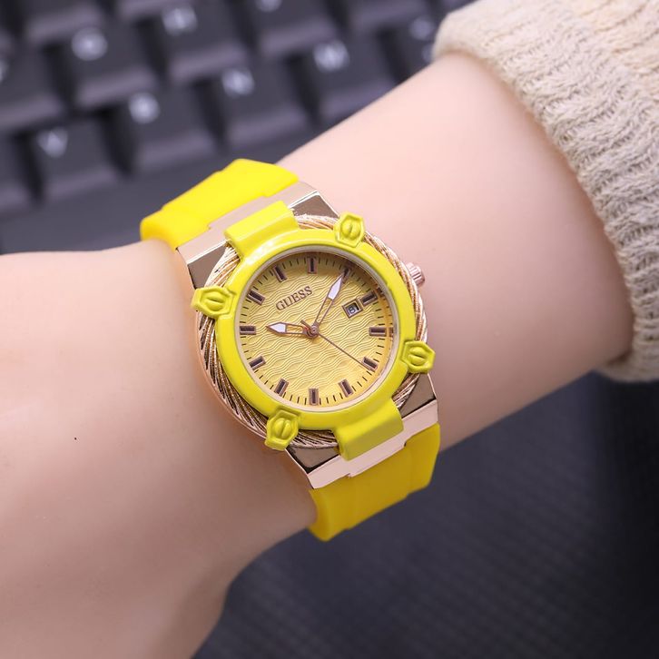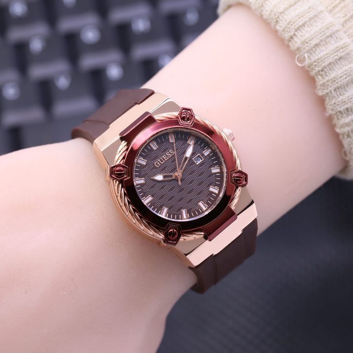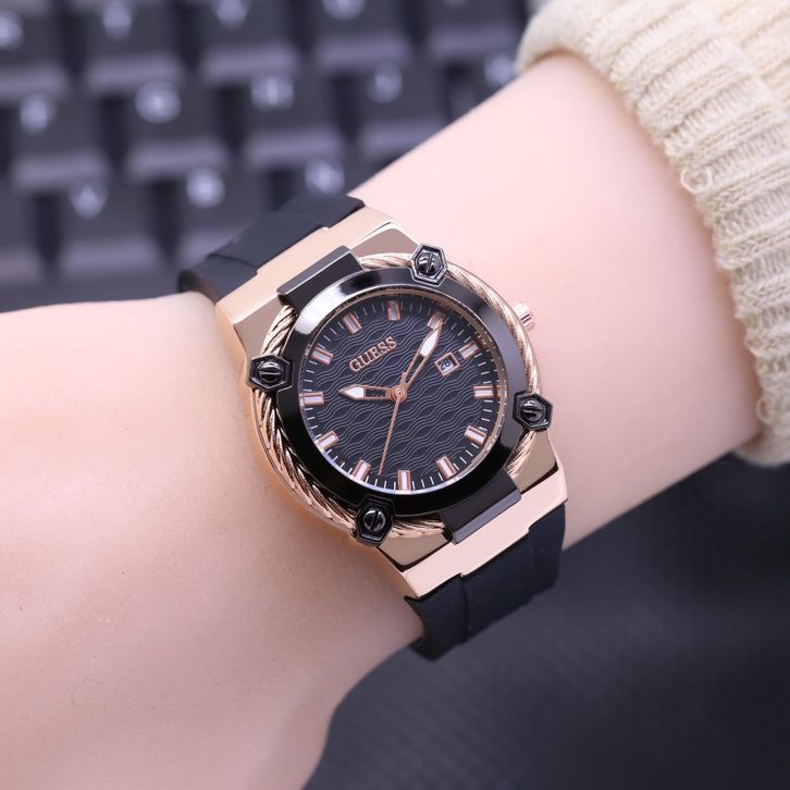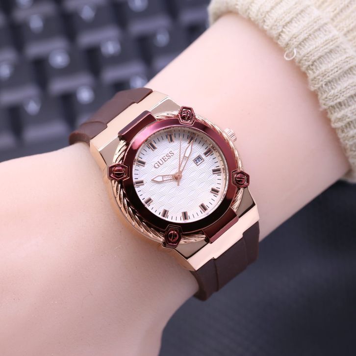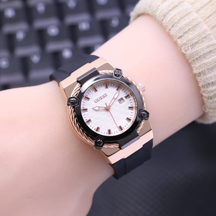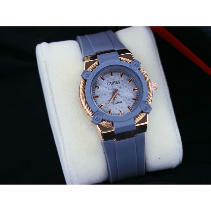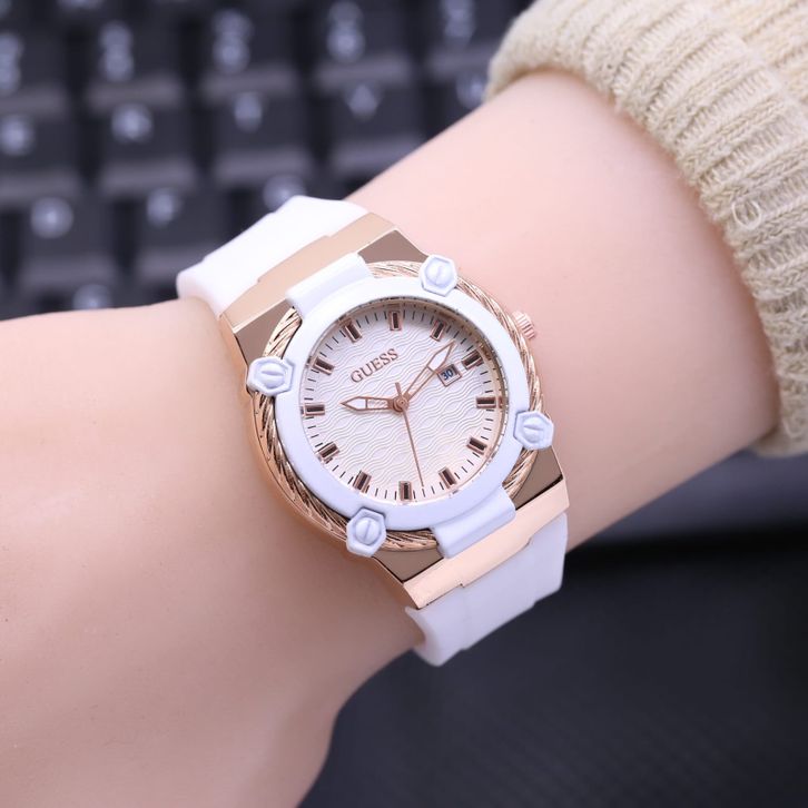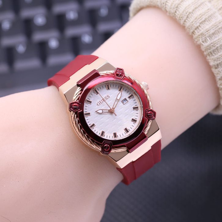 Jam Tangan Wanita Guess Mewah Tali Rubber Tanggal Aktif Free Box & Baterai Candangan 202414