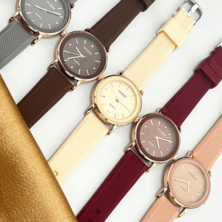 Jam Tangan Wanita Guess Mewah Tali Rubber Free Box & Baterai Candangan 202419