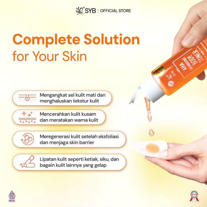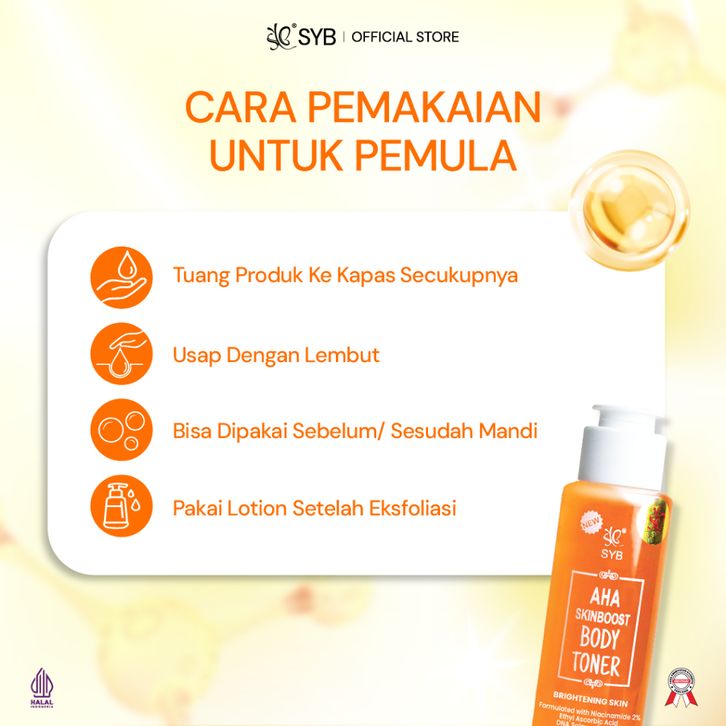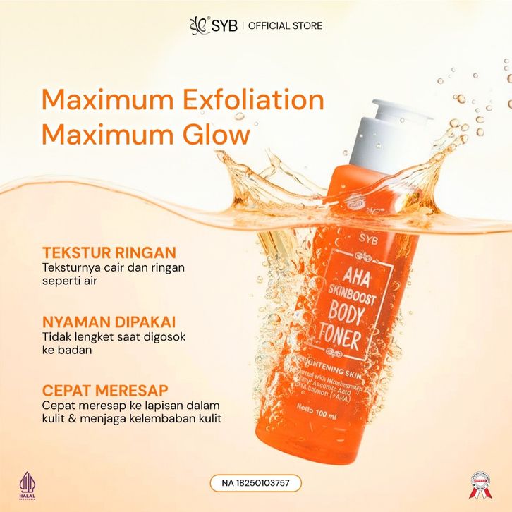 SYB AHA SKINBOOST BODY TONER TONER BADAN DENGAN KANDUNGAN GLYCOLIC ACID DNA SALMON NIACINAMIDE 2% TERLARIS