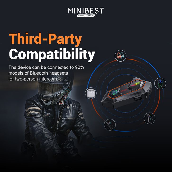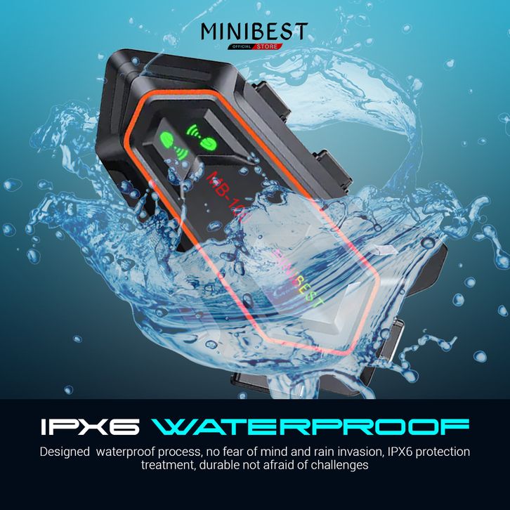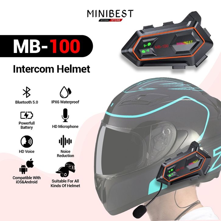 Intercom Helm Bluetooth Minibest MB100 5.0 dua arah dan Peringkat tahan air IPX6