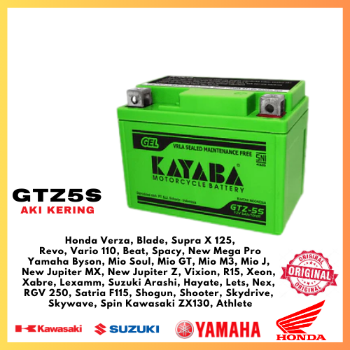 Aki Motor KAYABA HIJAU GTZ5S PREMIUM GM5Z3B GTZ5S MF GTZ5S FS Kering HONDA BEAT VARIO 110 SCOOPY best seller ori