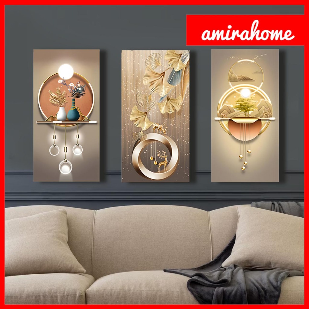 HIASAN DINDING AESTHETIC LUKISAN LAMPU 3D REALISTIK WALLDECOR DEKORASI RUANG TAMU