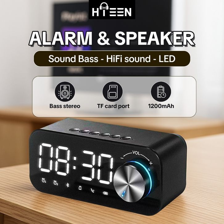 Hieen S16 LED Mirror Alarm Clock Bluetooth Speaker New Small Mini Portable Home Subwoofer Dual Alarm Clock Bluetooth Ste