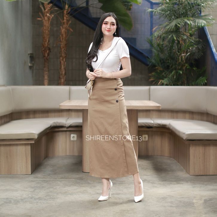 Rok Panjang Bengalin Cewek Rok Wanita Semi A-Line Rok Panjang Wanita Korea Fashion Style Rok Wanita Kasual Kekinian
