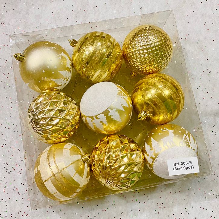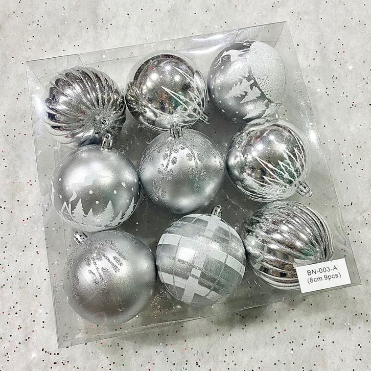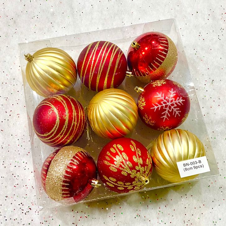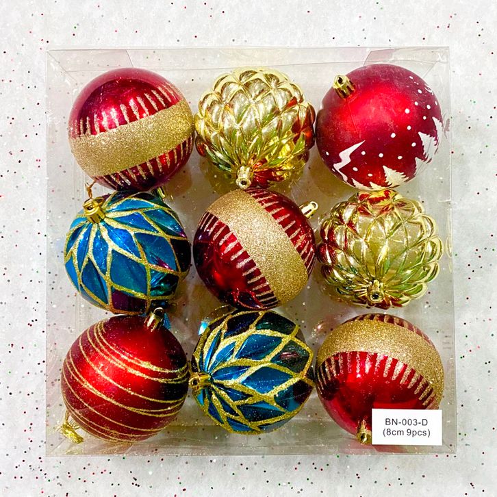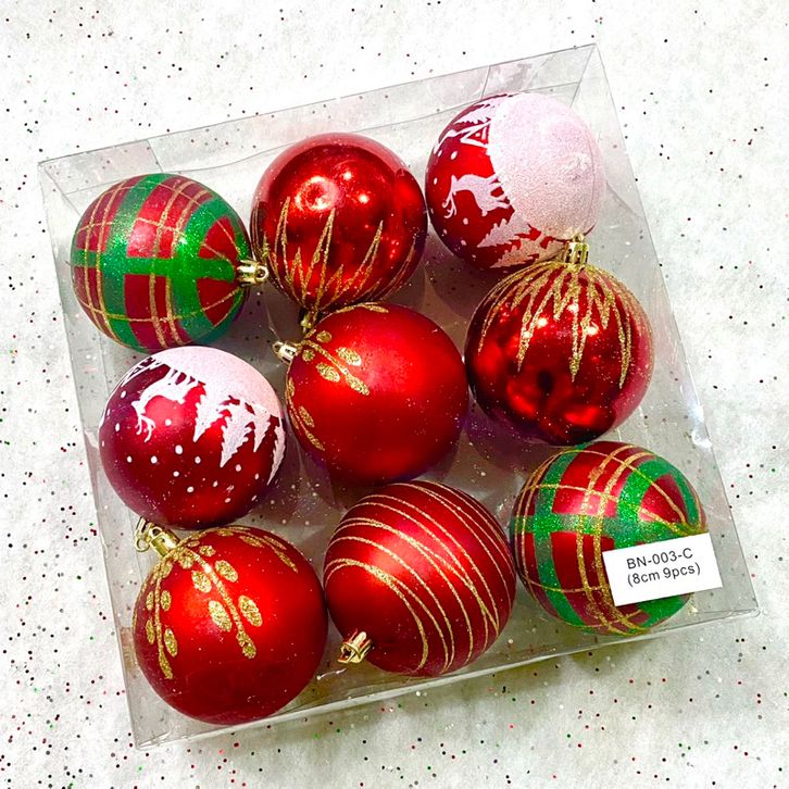 [PROMO 12.12] Bola Natal Jumbo 8CM 9pcs Painted Motif Christmas Ball Ornamen Hiasan Natal 2023