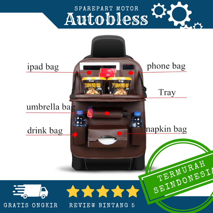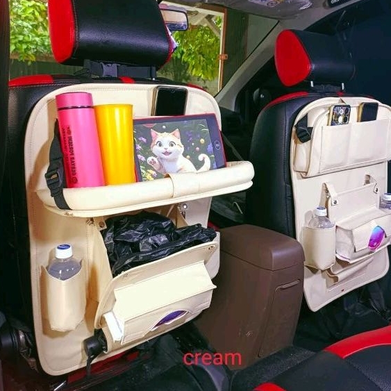 CAR SEAT ORGANIZER PLUS MEJA LIPAT TAS MULTI FUNGSI BELAKANG JOK KULIT PREMIUM / AUTOBLESS