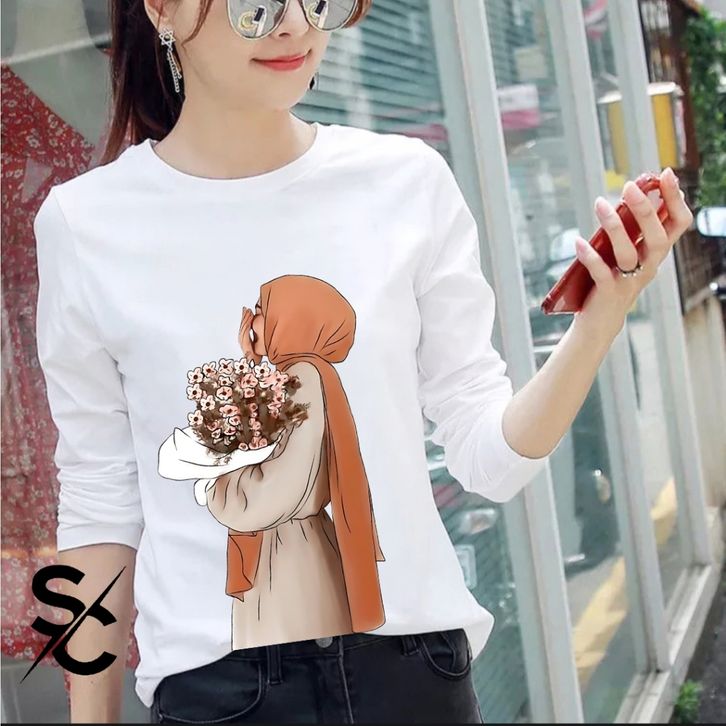 Kaos Lebaran Distro Wanita Lengan Panjang Bahan Cottun Combed Atasan Wanita Basic T-shirt Kaos Pria Cewek