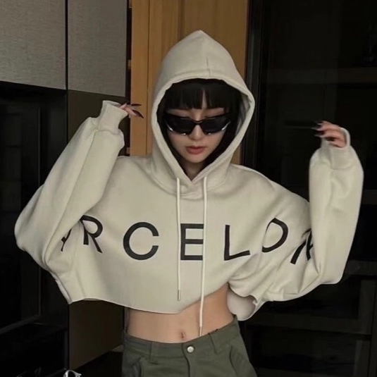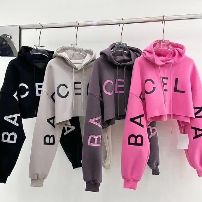 BARCELONA CROOPE HOODIE JAKET BASIC ATASAN CROP KOREA STYLE DEWASA REMAJA WANITA KOREAN FASHION
