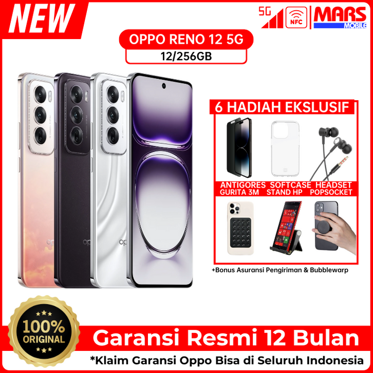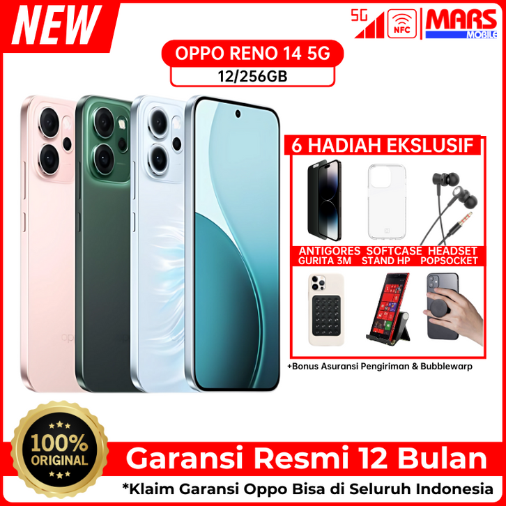OPPO RENO 14 5G 12/256GB GARANSI RESMI + BONUS ANTIGORES & SOFTCASE ORIGINAL / OPPO RENO 12