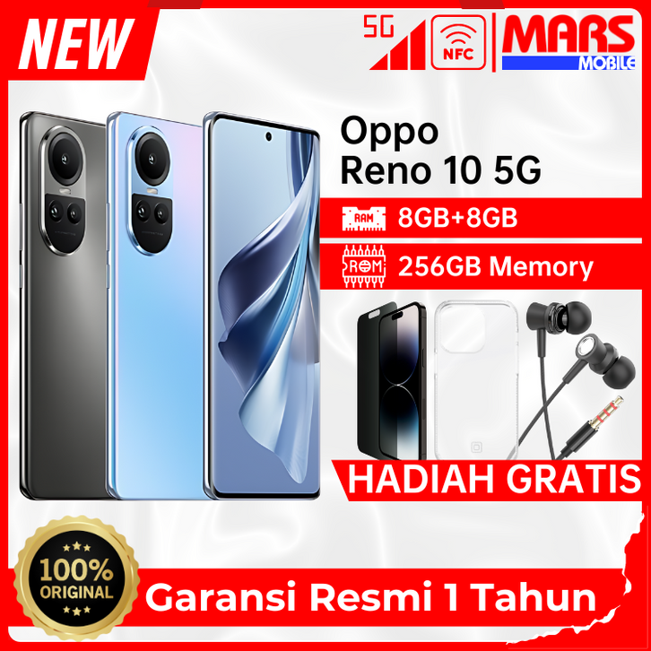 OPPO RENO 10 5G 8/256GB RESMI + BONUS ANTIGORES & SOFTCASE ORIGINAL