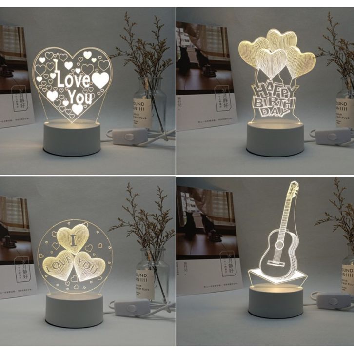 LAMPU TIDUR HIAS LED 3D ACRYLIC TRANSPARANT KACA BENING PAJANGAN HIASAN HADIAH