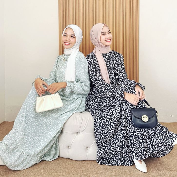 DRESS GAMIS WANITA KEKINIAN BUNGA SILK IMPORT MIDI DRESS WANITA KOREAN STYLE TERBARU BEST SELLER TERLARIS