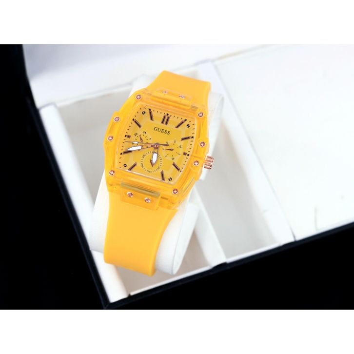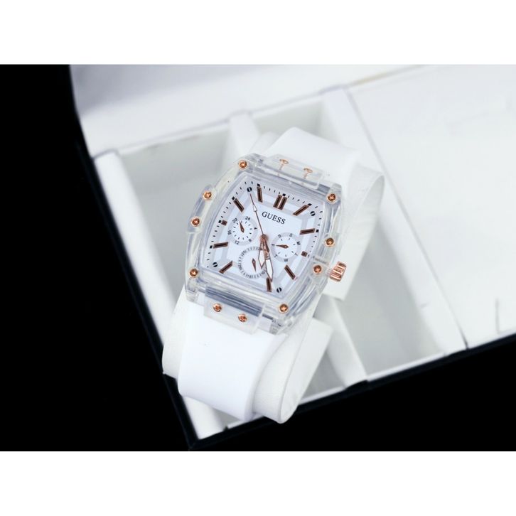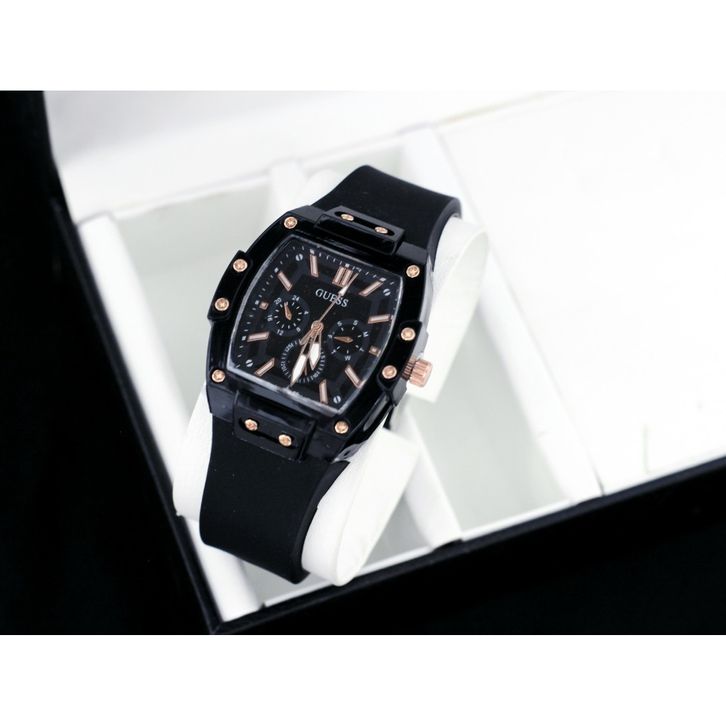 Jam Tangan Wanita Guess Mewah Tali Rubber Chrono Variasi Free Box & Baterai Candangan 202432