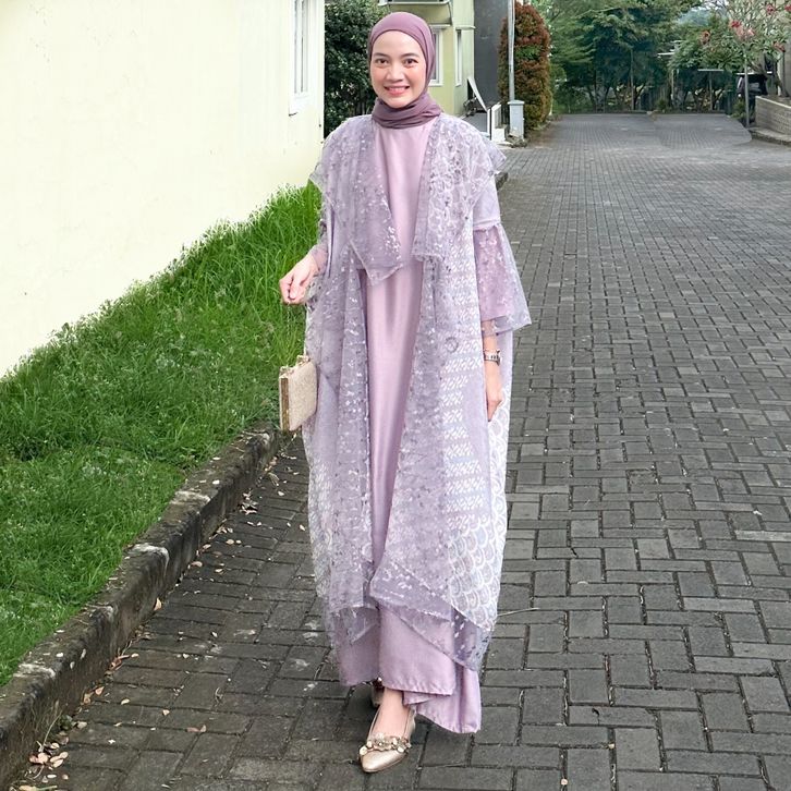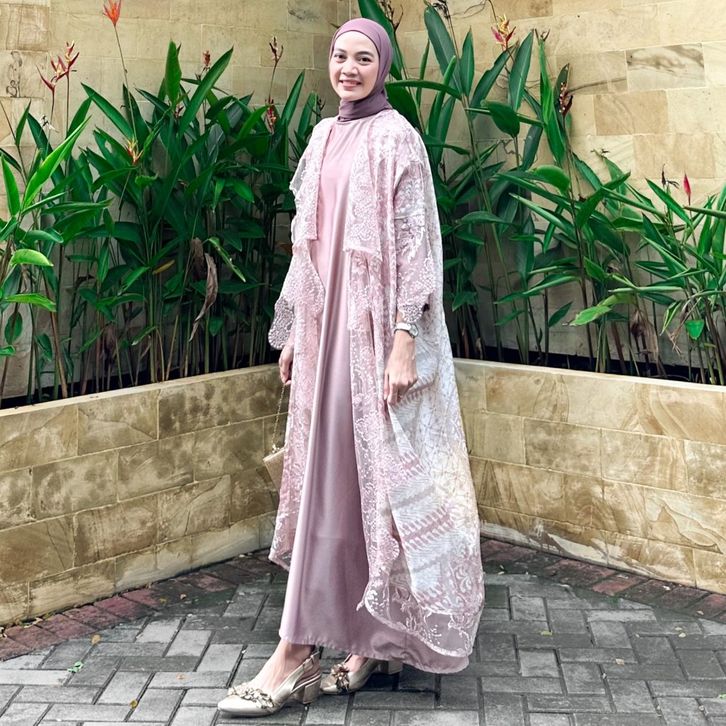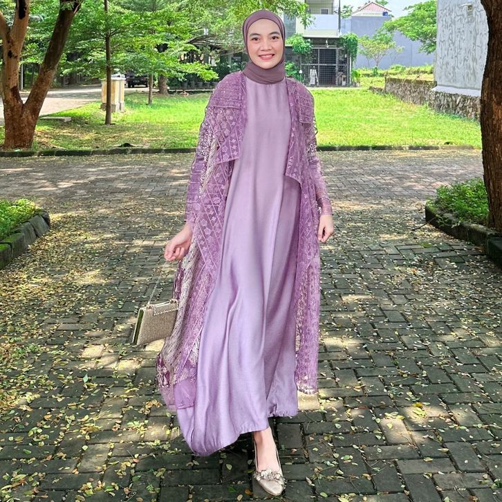 GAMIS WANITA SET DRESS OUTER BATIK MODERN VISCOSE GAMIS SILK SATIN WANITA MUSLIM KONDANGAN SERAGAMAN KELUARGA