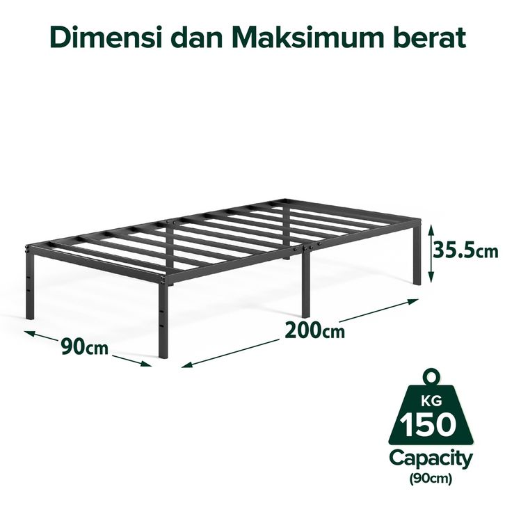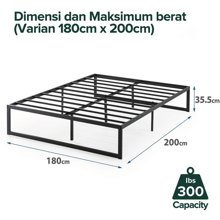 Dipan Kasur Zinus Ranjang Tidur Divan Besi Design Industrial Bed In a Box Tanpa Sandaran Kokoh Berkualitas Berg