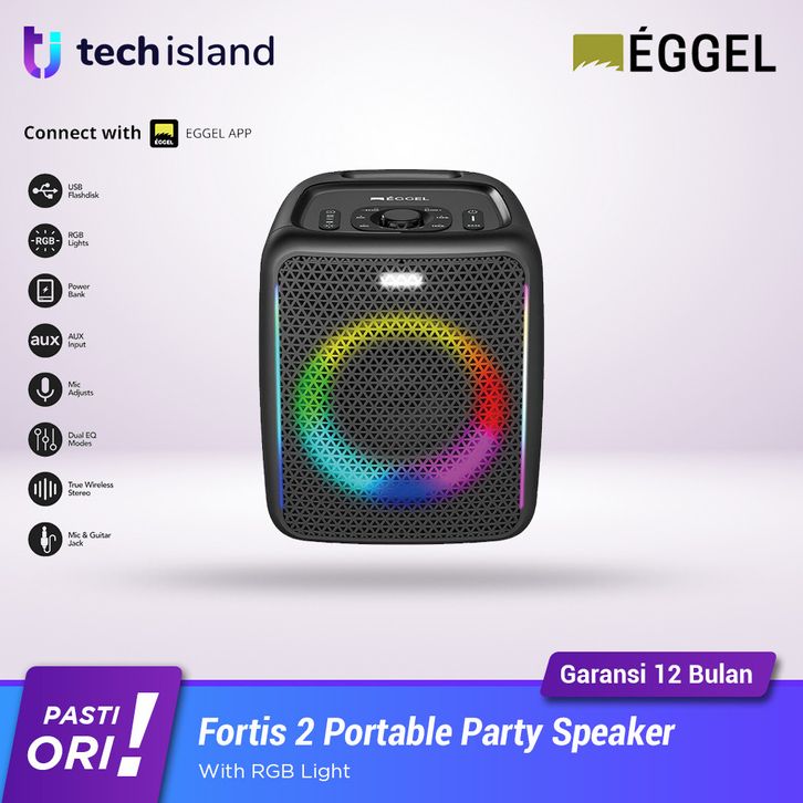 EGGEL FORTIS 2 PORTABLE BLUETOOTH PARTY SPEAKER TWS STEREO RGB LIGHT DUAL EQ MODES USB FLASHDISK SUPPORT