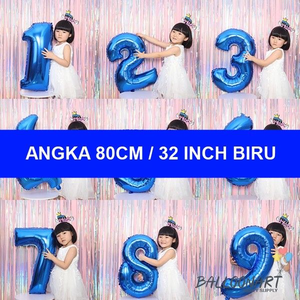 Angka 80CM BIRU/Balon Foil Angka Besar/Jumbo - 0