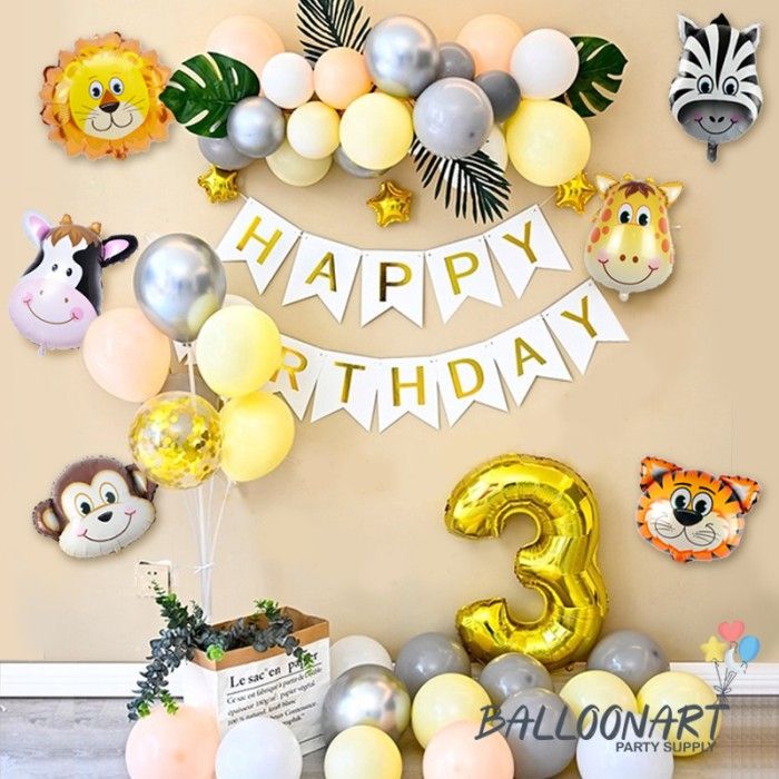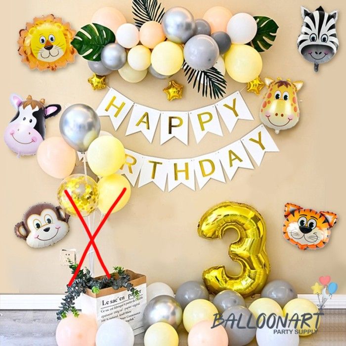 JUNGLE CHAIN DEKORASI SET/PAKET DEKORASI ULANG TAHUN ANAK/BALON FOIL - Tanpa Standing 1