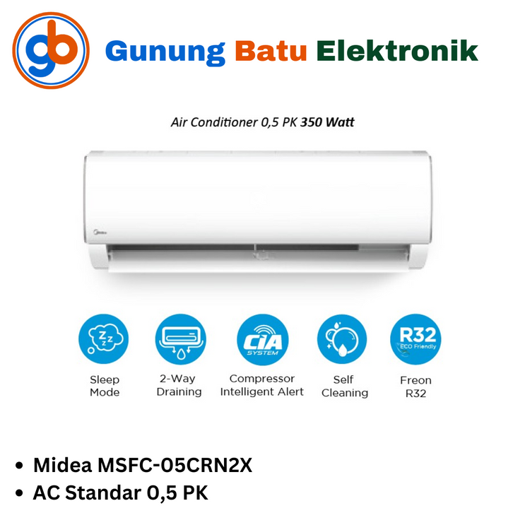 AC Midea 1/2 PK (0.5 PK) Standard - R32 Series - MSFC-05CRN2X