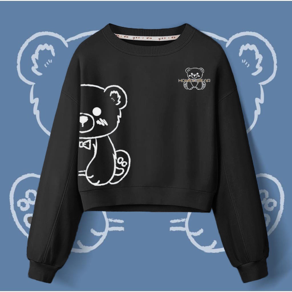 Honey Bear Crop Sweater Premium Outerwear Basic Crewneck Remaja Wanita Korean Style