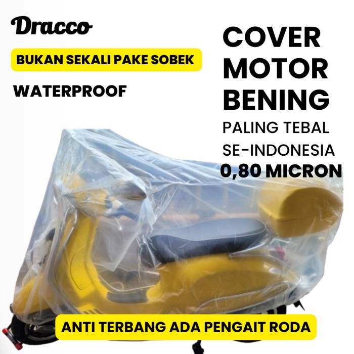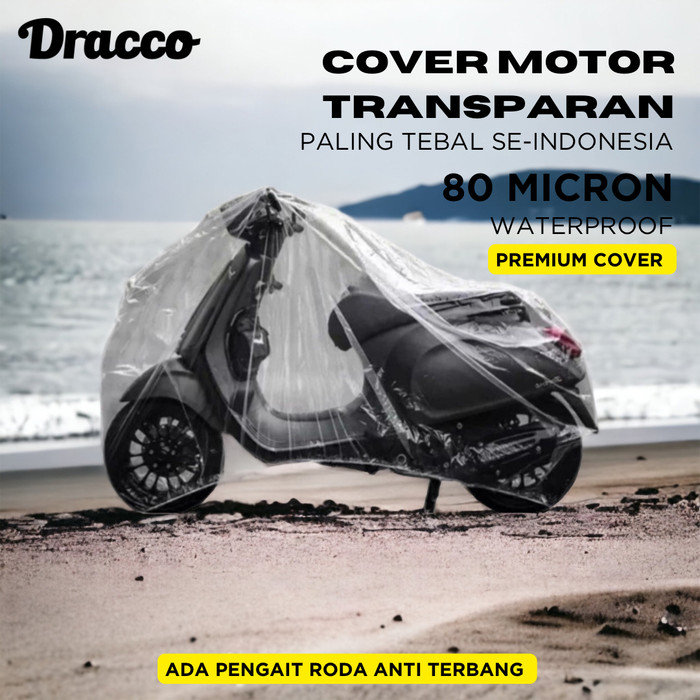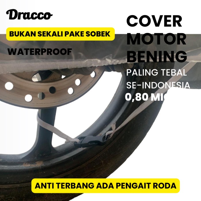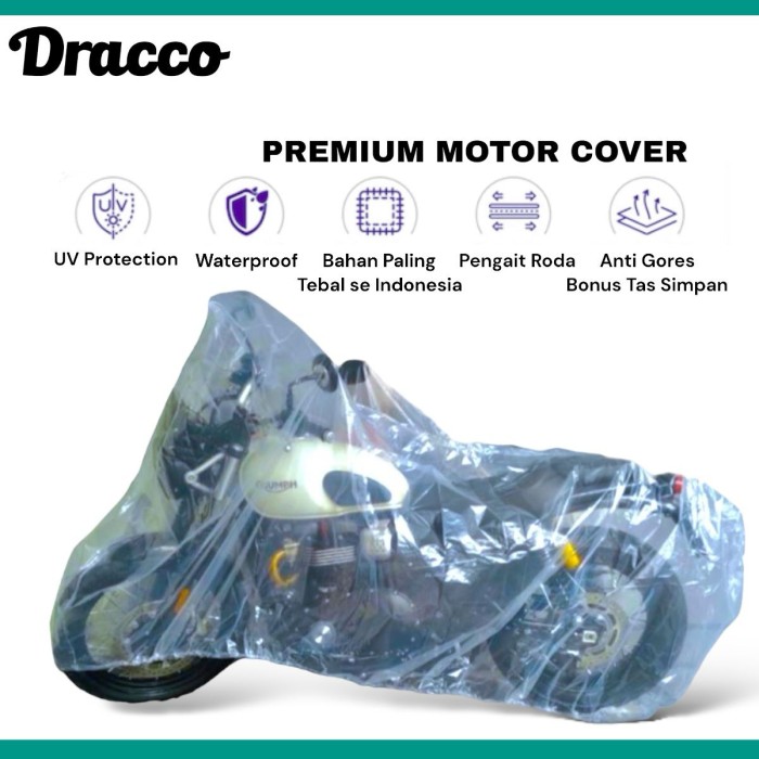 COVER MOTOR SELIMUT PLASTIK 100 PERSEN WATERPOOF AWET TEBAL 80 MICRON DRACCO - M