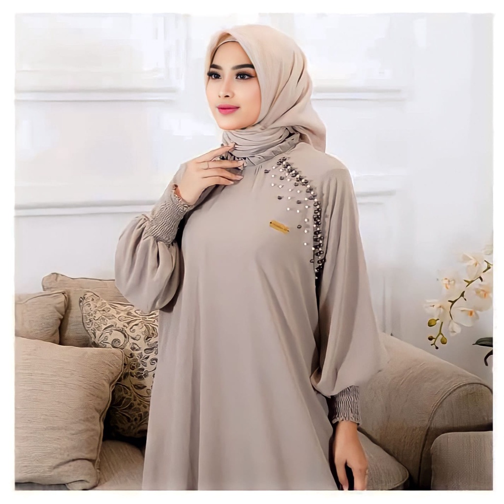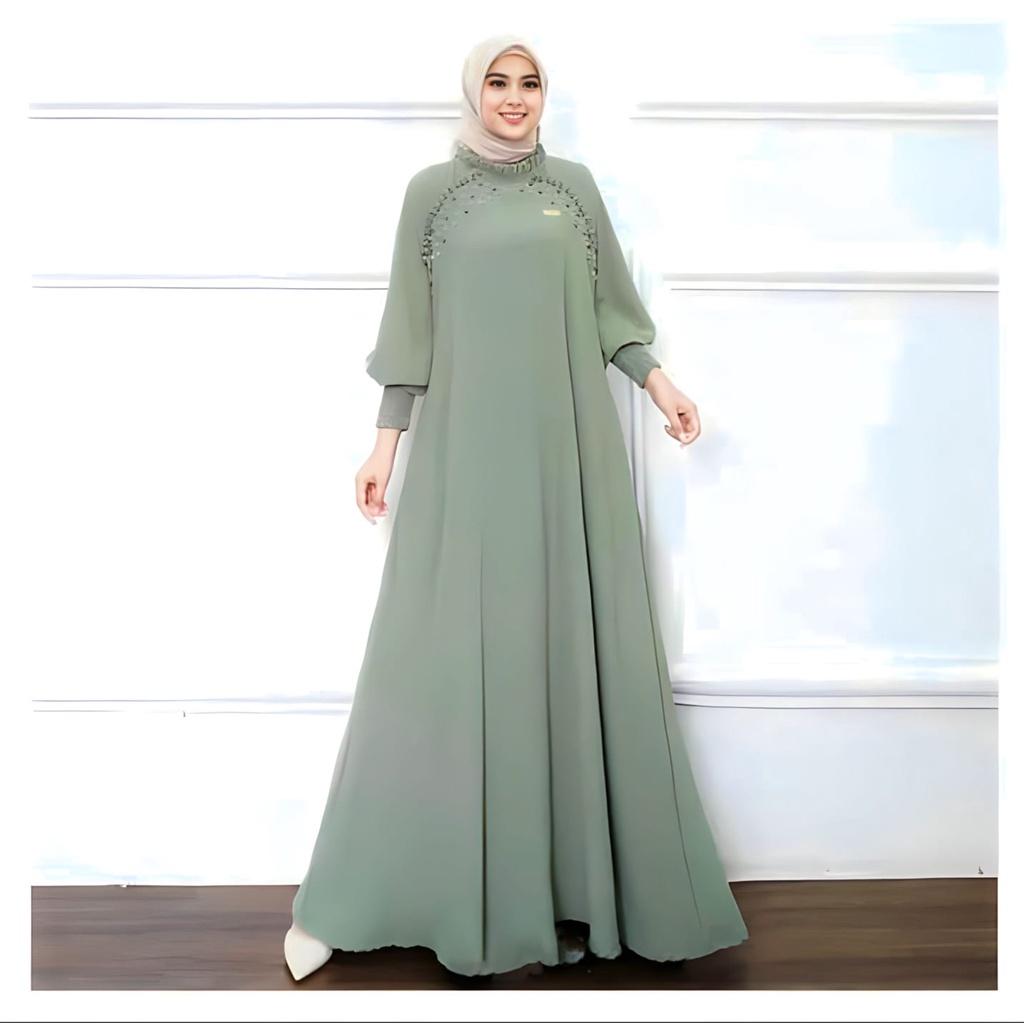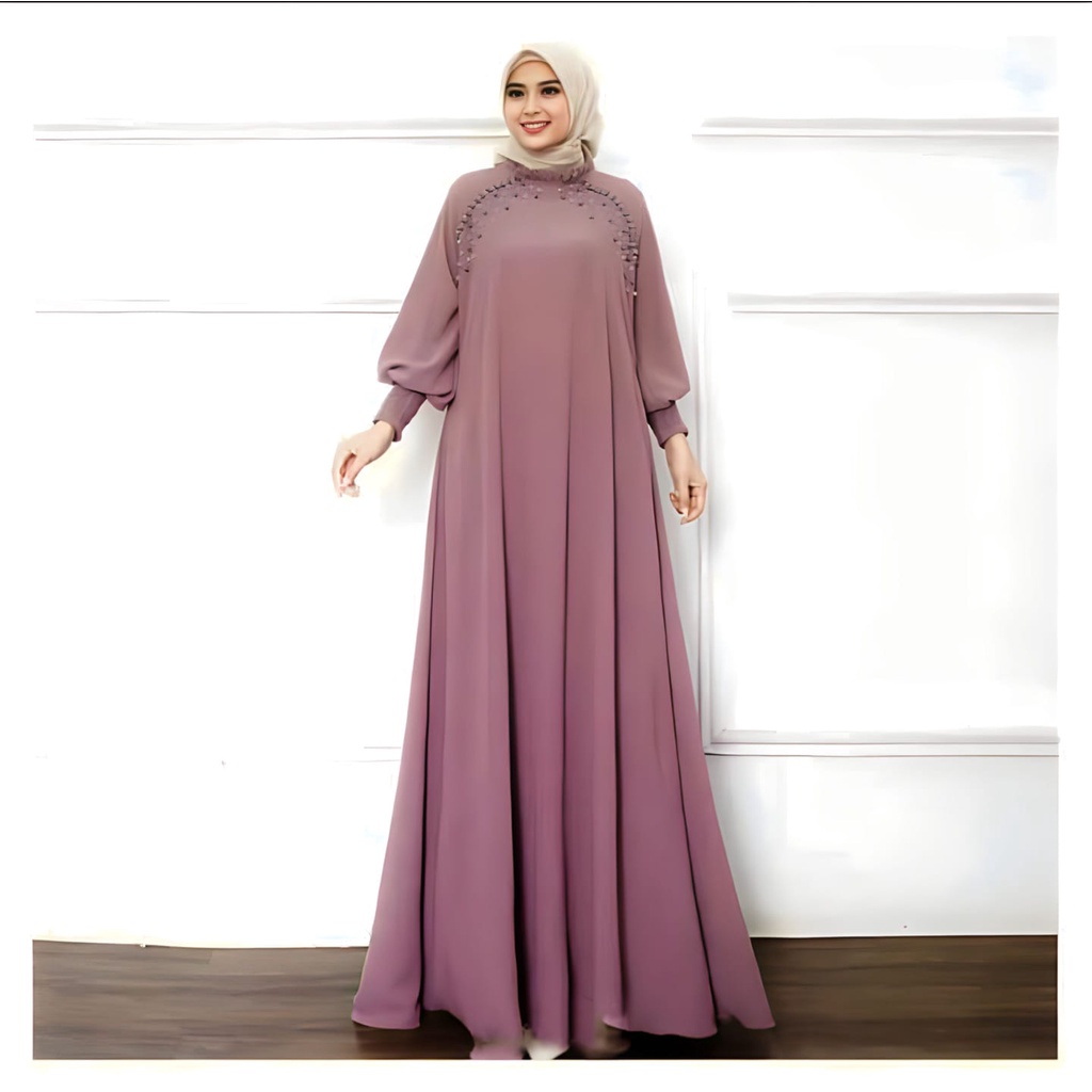 Outfit - Olivia Dress Maxy Pearls Plained Crinkle Airflow Premium Gamis Gaun Kondangan Wanita Kekinian Terbaru