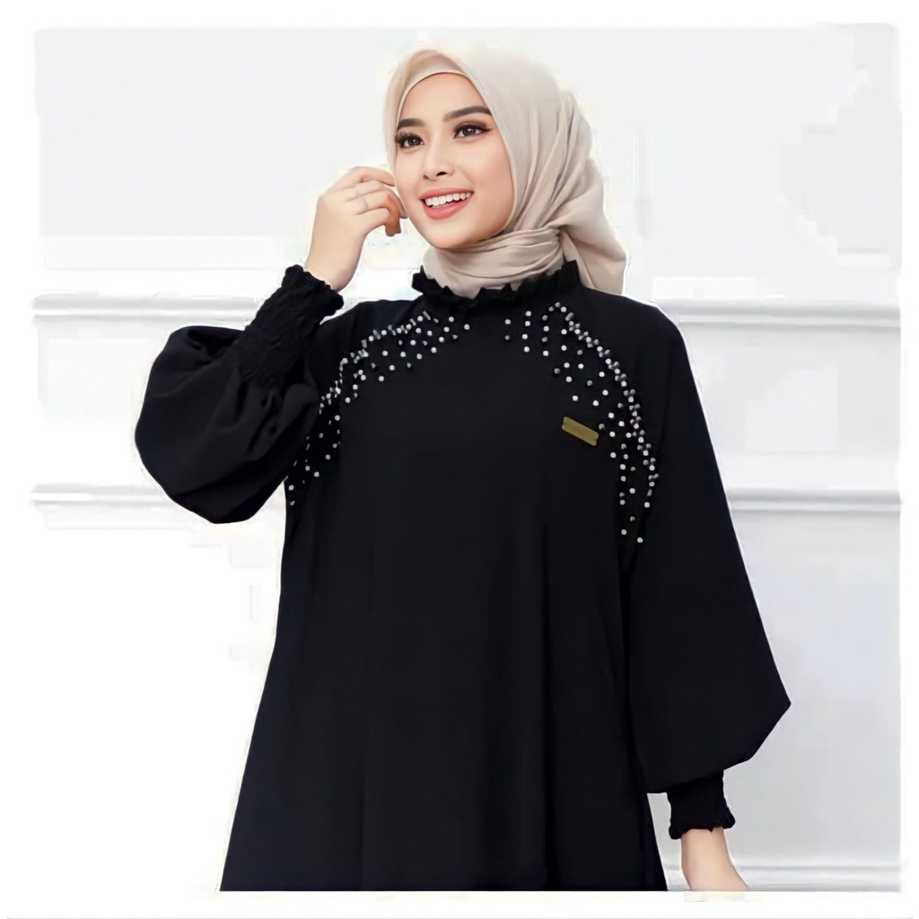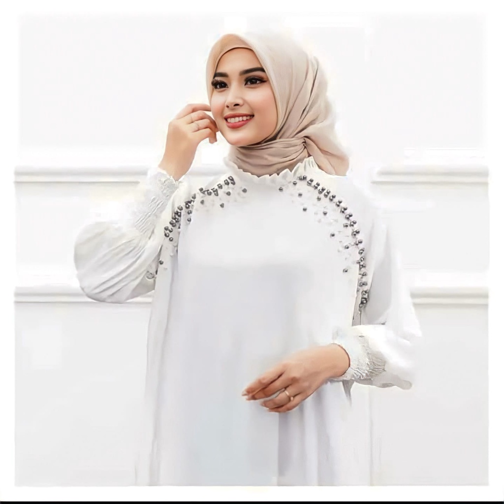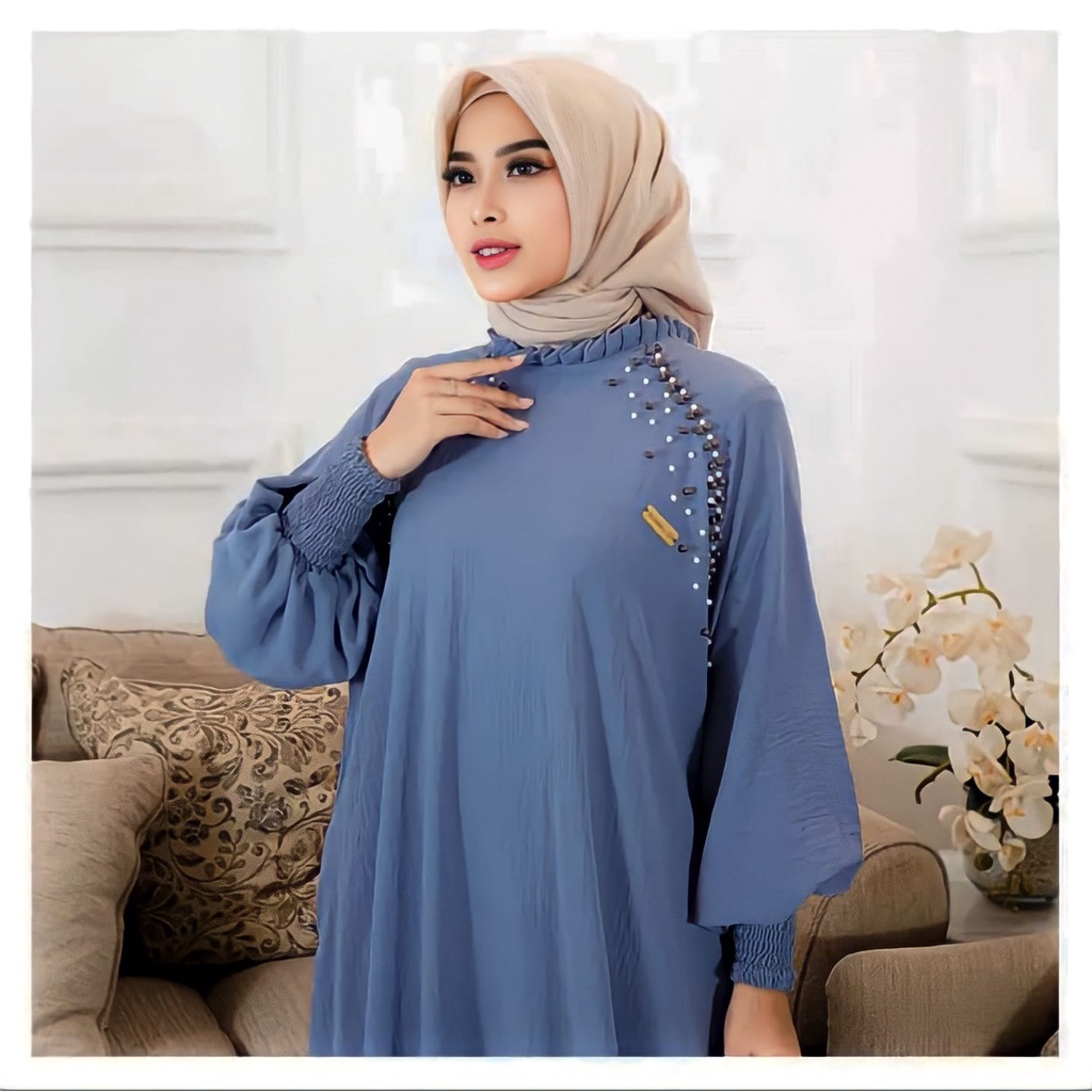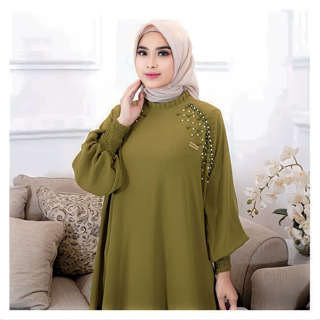 Outfit - Olivia Dress Maxy Pearls Plained Crinkle Airflow Premium Gamis Gaun Kondangan Wanita Kekinian Terbaru