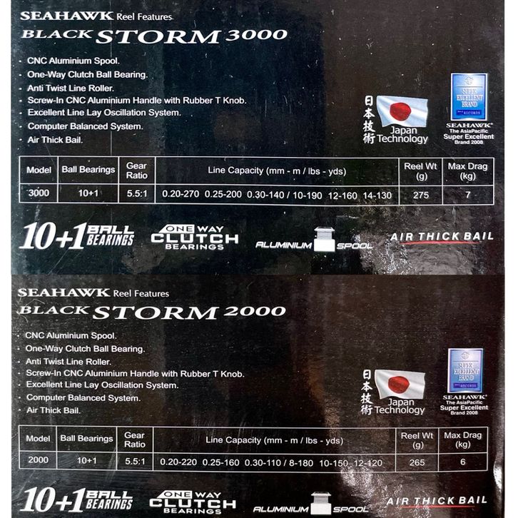 Reel Seahawk BLACK STORM 1000/2000/3000 10+1Bb PowerHandle