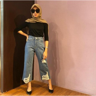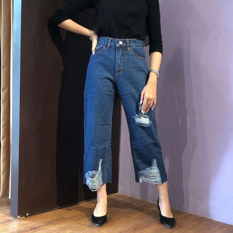 (Gratis Ongkir) TRIVELA - CHLAUDY CULLOTES JEANS 27-34 JUMBO / CELANA JEANS KULOT RAWIS SOBEK