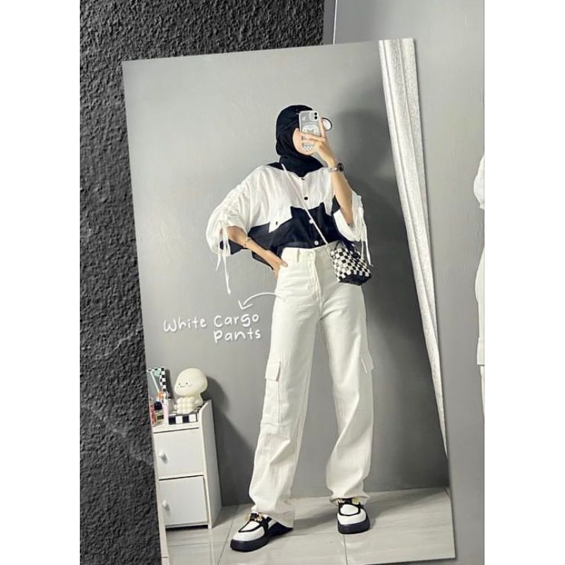 JEANS CARGO WANITA KEKINIAN WARNA PUTIH / CELANA PANJANG JEANS CEWEK KOREAN