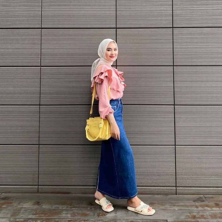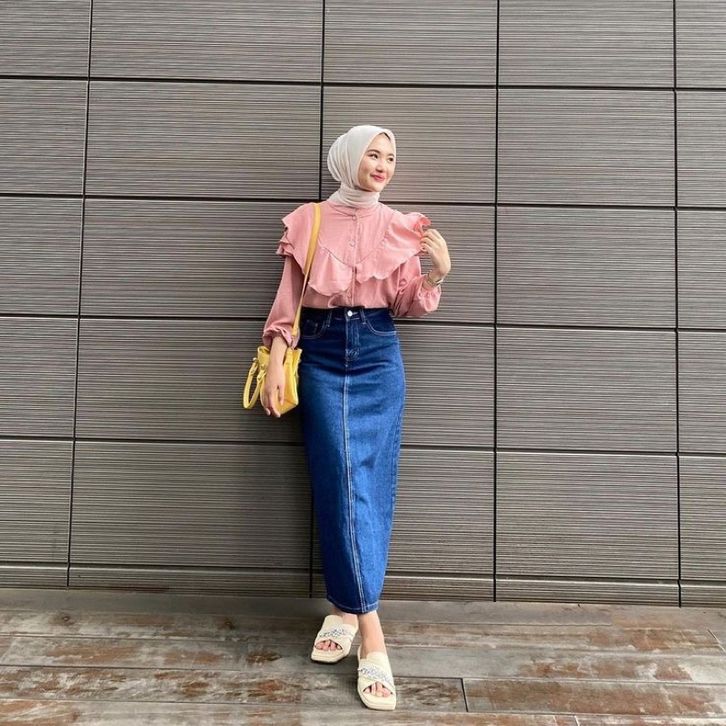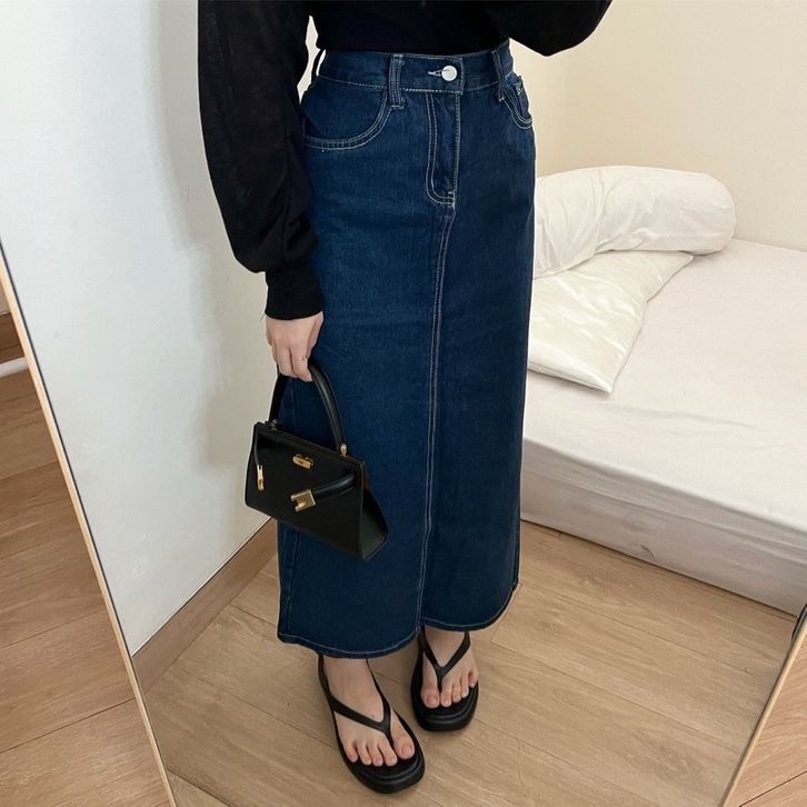 Rok Cewek High Waist Rok Jeans Panjang Rok Denim Wanita Kasual Korea Fashion Style Rok Panjang Wanita Kekinian