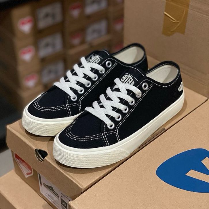 Sepatu Sneaker Ventela New Public Alpha Low Black Natural Authentic Original