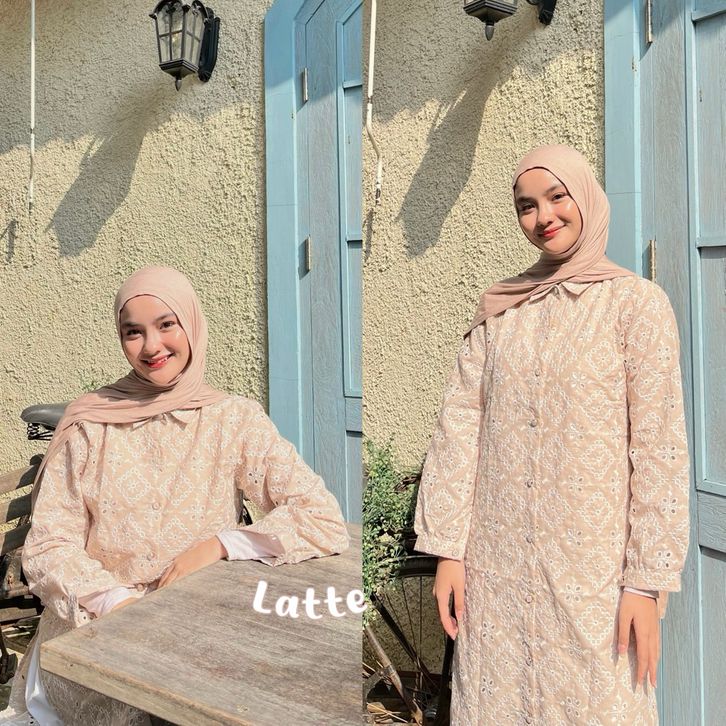 NAEMA - MECCA LONG TUNIK EMBROIDERY BY NAEMA | TUNIK COTTON EMBROIDERY | TUNIK KONDANGAN | TUNIK LEBARAN | DRESS LEBARAN