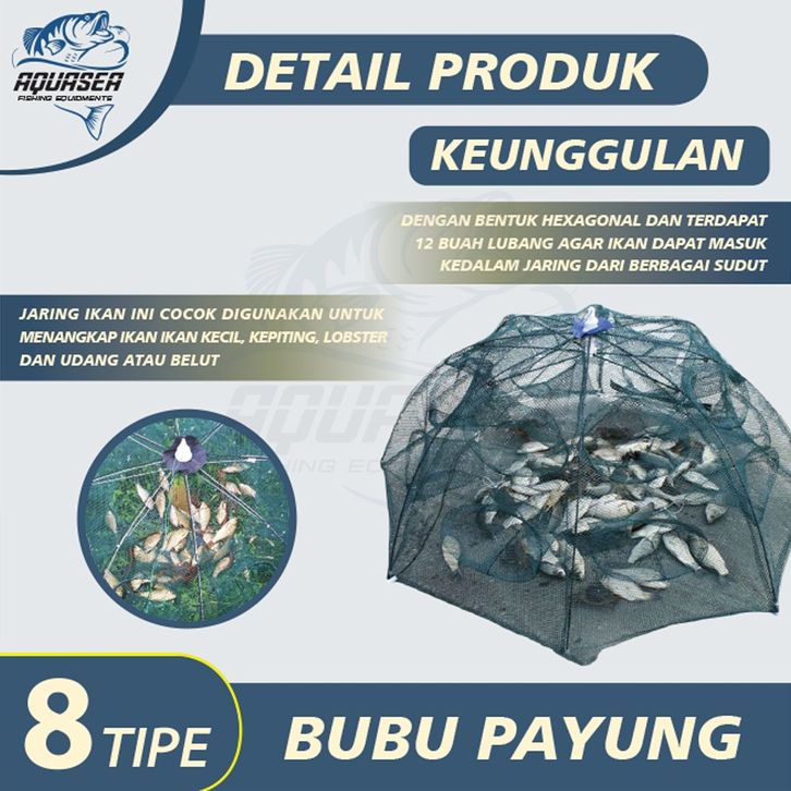 AQUASEA - Payung Bubu 8 Tipe Jaring Jebakan Perangkap Udang ikan Kepiting 2/4/6/8/10/12/16/20 lubbang
