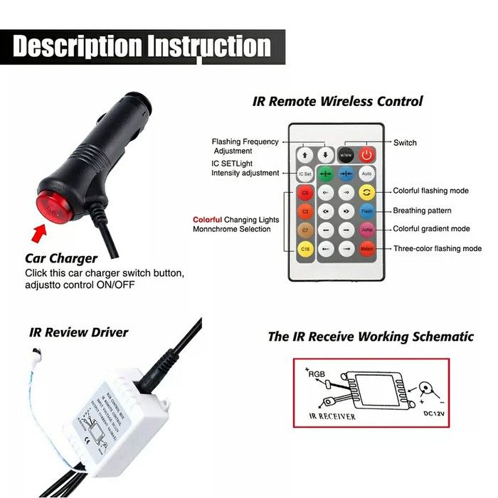 4 Pcs DRL LED Kolong RGB Lampu Dekorasi Dashboard 16 Warna + Remote